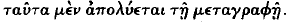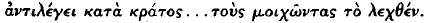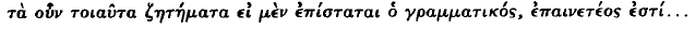Aristophanes conceals the fact that Aristotle is speaking exceptionally of a proverb, and alters the order of epitomization so that he can say: ![]()
