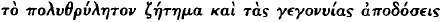 6 An example of a syggramma containing an ⋯ναγραФή of λύσεις would be Aristonicus’ work On the Wanderings of Menelaos, who according to Strabo 1. 2. 31 ![]()