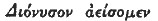 5 Ibid., pp. 41 ff. On p. 41 of this work Nilsson rejects his previous view, Min. Mycen. Rel., p. 566, that Dionysus Liknites was a figure of vegetation cult. This seems somewhat unnecessary, since he had at that time already, Min.-Mycen. Rel., p. 567, distinguished between the trieteric orgia and the concept of the divine child that is born and dies annually. To illustrate the annual birth and death of Dionysus, Nilsson quotes, Min.-Mycen. Rel., p. 567 n. 18, a fragment from a hymn to the epiphany of this god, which has been published in Mitteilungen aus der Papyrussammlung der Nationalbibliothek in Wien, N.S. i, ‘Griechische literarische Papyri’, i (1932), XXII. ii. 138:![]()