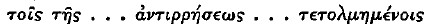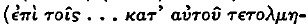 page 112 note 3 In the minuscule writing, an open π can be confused with K, and the ligature tλ can be mistaken for ![]()