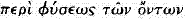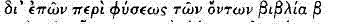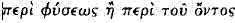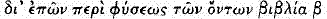as a title for Empedocles are increased by the fact that Lucretius′ De rerum natura (which is often thought to be a deliberate echo of the titles of Epicurus and Empedocles) is a direct translation of