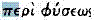 being used without a limiting genitive to mean ‘nature in general’ in the Presocratic period. See Schmalzriedt, E.,Peri Physeos(1970) and Wright (1981), pp.85–6. The credentials of