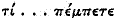 page 233 note 6 This repeats the pattern of the first str., where the apostrophe of nature (the haunts where Hippolytus used to hunt in the train of Artemis, 1126 ff.) follows upon the chorus's declaration of their personal reaction to the situation (1120: ![]()