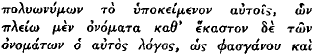 page 78 note 1 In this, as he says, he follows Waitz (ii. 452). Hambruch does not explicitly assert that the occurrences of òµώνυµoς in A 15 are ‘Speusippan’, but I assume he thought they were: (a) he identifies ‘Speusippan’ òµώνυµα.a with