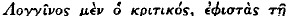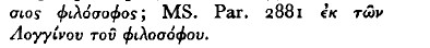 page 44 note 9 Flavius Vopiscus, Aurelian 30. 3: de Longino philosopho; Suidas: ![]()