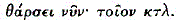 . The exhortation is ironic in Hymn. Horn. Merc. 301 (where Radermacher, ad loc, entirely misses the irony), serious in Megara 68 and in the inscriptional attestations indicated above. On consolatory
