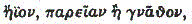 page 250 note 5 See especially H. Il. 3.64; b.Hom. 10.2; and cf. Mimnermus 1.3 D and Anacreon 96.3 D, and Anacreon 96.3 D, ![]()