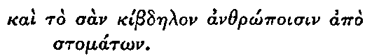The ancients found here a reference to Lasus’ asigmatic ode; and there is a connection. The explanation of Lasus’ fastidiousness is given by Aristoxenus (fr. 87 W.) ap. Ath. 467 a: the s-sound was σκληρόστοµον and , i.e. it was not conducive to distinct hearing of the words against the pipe, because the pipe was too like it. Pindar is saying that in the traditional dithyramb in the aulodic the s did not come out true from men's mouths, it did not live up to its promise, because of the pipe accompaniment. His new dithyramb has quite a different sound, justified by a vision of a Dionysiac rite among the gods, with drums, κρόταλα, and wild cries.