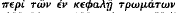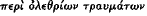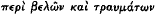 Within Emile Littreés classification of Hippocratic works, class ten consists of three lost works, two of which appear to have been treatises on the treatment of serious wounds and on the extraction of arrows. The sources for their titles—Erotian, Galen, an eleventh-century Arabic MS and the twelfth-century MS Vat.graec.276–disagree on minor points, but it is clear that they are all referring to the same works.