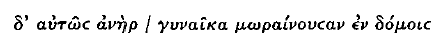 The argument here is ‘You may argue that a woman, as much as a man, has a strong case when wronged by a man: but so, equally, has a man a strong case when he has an immoral woman in the house … (677)have I not there-fore a right to help my own kin?’ This comes in a stigmatized passage (668–77 del. Hirzel, Murray), which I believe to be mostly genuine, but obscured by the intrusion of 675–6; the latter couplet was quoted from some other play as a well-meant but ruinous ‘clarification’ of what was wrongly taken to be a discussion of the relative. ‘strengths’ of husband and wife (Menelaus, of course, is thinking of ‘father’ and ‘son-in-law's con-cubine’, but uses ‘man’ and ‘woman’ because the argument is generalized). The destructive intrusion of a borrowed sententious distich must be more probable than the ad hoc composition and insertion of a tenline passage which is virtually unintelligible as things stand.