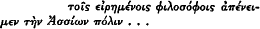 page 143 note 3 Dittenberger, S.I.G. i, No. 120; Tod, Greek Historical Inscriptions, ii. 165. Tod's dating, 350 B.C. seems too early. The treaty was clearly made after Hermias' modification of his tyranny, and therefore after his association with the philosophers.