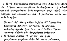 2 The trustworthiness of Natalis Comes is impeached by Joseph Scaliger (Epis. 309: homo futilissimus) and Huet (De Claris interpretibus 8. 5: verborum quippe et characteris securus, vix obtinet sententias). For an example of error, compare Schol. Apoll. Rh. 4. 86: