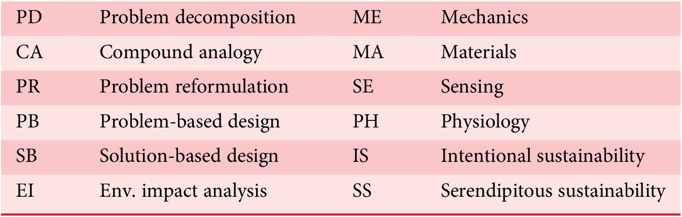 (P3) Physiological designs tended to be solution-based; other domains were more biased towards problem-driven design. This pattern initially was a surprise to us; insofar as we know, it has not been previously discussed in the literature. As highlighted in Tables 3 and 4 through colour coding, Coder 1 found that eight out of the nine case studies that used solution-based design were in the domain of physiology; Coder 2 found the same for 7 out of 12 case studies. One possible explanation is that the domain of ‘physiology’ affords system-level design principles and mechanisms that trigger solution-based design more commonly than the other three domains of mechanics, materials and sensing. This is consistent with our characterization of the real domain of interest here, namely, the mechanism of internal functioning of a system, and thus at least partially validates our characterization of the domain.