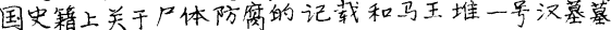 , “Lüe tan wo guo shi ji shang guan yu shi ti fang fu de ji dai he Mawangdui yi hao Han mu mu zhu wen ti” ![]()