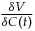 R(t) := \frac{\frac{\delta V}{\delta C(t)}}{\frac{ \delta V}{\delta C(0)}},