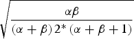$\sqrt {\displaystyle{{{\alpha \beta}} \over {\left( {\alpha + \beta} \right)2^{\ast}\left( {\alpha + \beta + 1} \right)}}} $