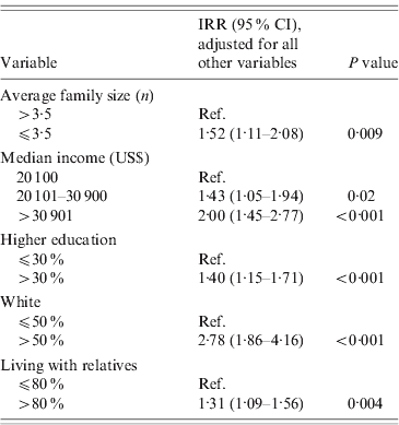 Table 1. Census tract factors associated with reported cases of Campylobacter in the 20–29 years age group