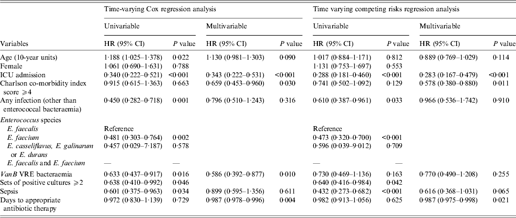 HR Hazard ratio; CI, confidence interval; ICU, intensive-care unit; VRE, vancomycin-resistant enterococci.