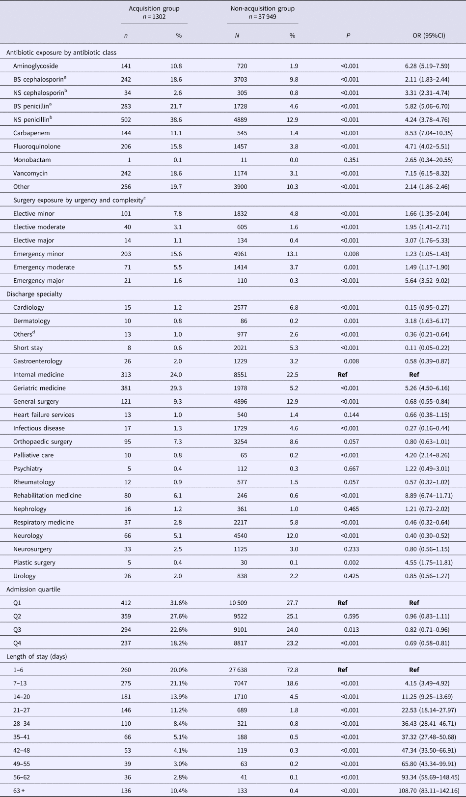 Table 2. Univariate analysis of factors among patients in the acquisition and non-acquisition groups (n = 39 251)