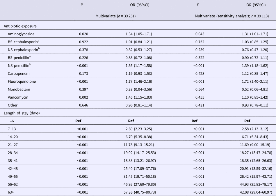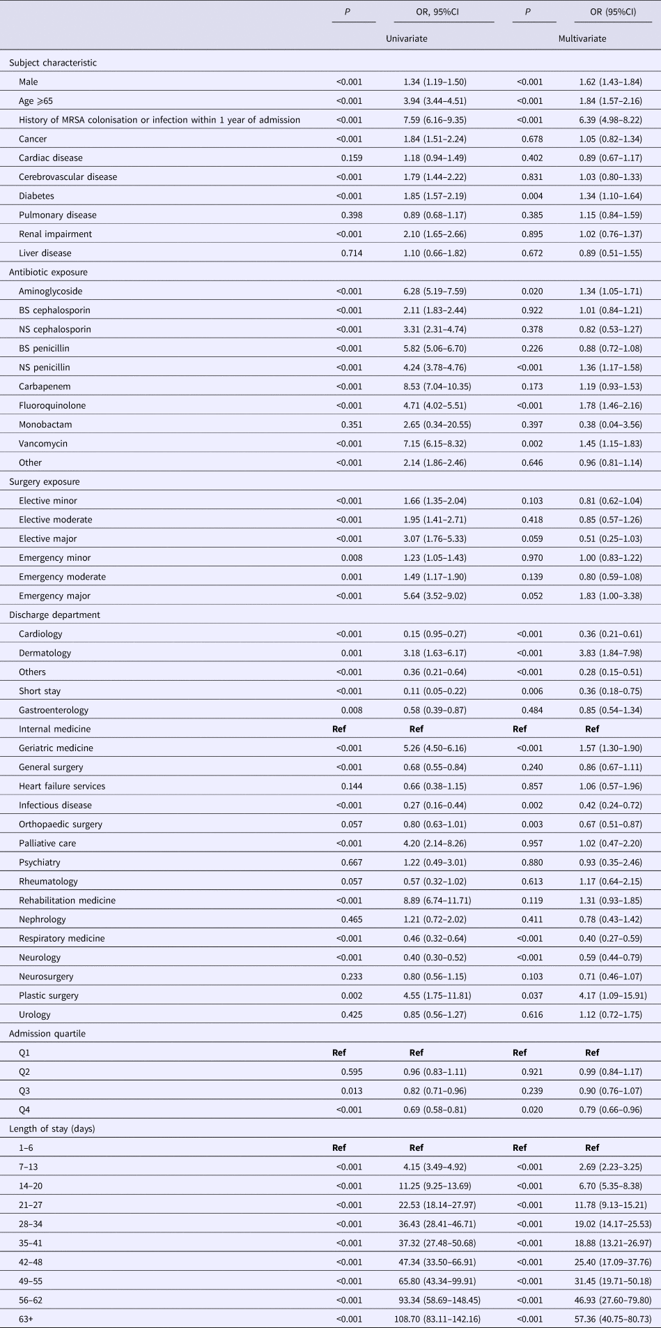 Table 3. Multivariable analysis of factors associated with MRSA acquisition (n = 39 251)