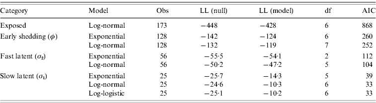 Table 4. Goodness-of-fit of modelled distributions in time-to-exit models for each of the four infection categories