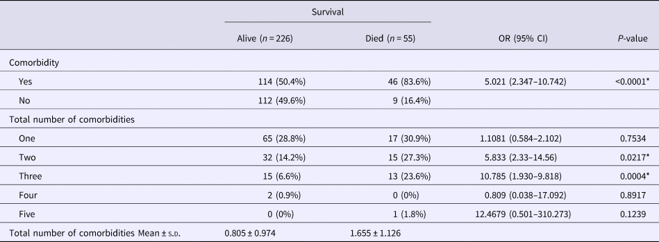 Table 3. Number of comorbidities in relation to mortality from Middle East respiratory syndrome coronavirus infection