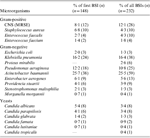 Table 3. Microorganisms responsible for ICU-acquired BSIs