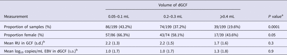 Table 2. EBV DNA recovered from dGCF compared with oral wash