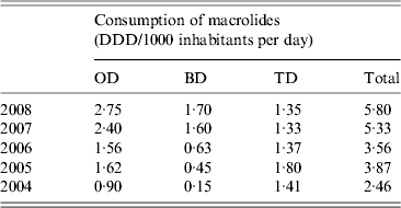 Table 2. Macrolide consumption in Serbia from 2004–2008