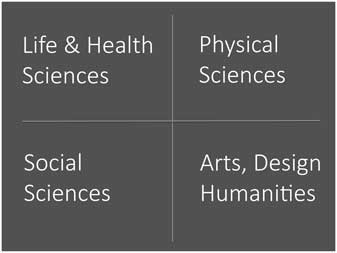 The Main Panel for arts and humanities that the author chaired in REF 2014 was one of four Main Panels (Figure 1) that were less specialized although still broadly cognate. Each was responsible for a wide range of disciplinary sub-panels that, together, embraced all research disciplines within the Academy. Indeed, the diagram shown in Figure 1, depending on how one interprets it, could reflect the theme set out for the conference at which this talk was delivered, and for the present volume in which it appears — that of CP Snow's famous Rede Lecture of 1959 describing two cultures separated by an intellectual gulf. Here, in the upper left quadrant, sit the hard sciences and, diametrically opposed in the bottom right quadrant, the soft humanities. One explores the truth of the universe and the other investigates the human condition. But such crude binary oppositions only serve to isolate discovery science from creativity and innovation, at a time when we need greater integration of, and overlap between, these approaches.