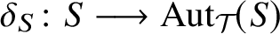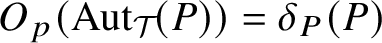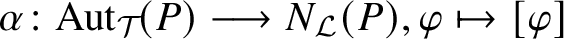 $$ \begin{align*}1\longrightarrow Z(\mathcal{F}\;)\xrightarrow{\;\;\delta_S\;\;} \mathrm{Aut}_{\mathcal{T}}\;(S)\longrightarrow \mathrm{Aut}(\mathcal{T}\;)\longrightarrow \mathrm{Out}_{{\operatorname{typ}}}(\mathcal{T}\;)\longrightarrow 1. \end{align*} $$