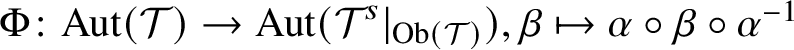 $\mathrm {Aut}(\mathcal {T}^{\;+})\longrightarrow \mathrm {Aut}(\mathcal {T}\;)$