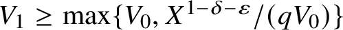 $$ \begin{align*}\max\left\{\left(\frac{\tilde{q}_0^{1-\delta'}}{K}\right)^{2^{-L}},\left(\frac{\tilde{q}_{L-j+1}}{K}\right)^{2^{-j}}\right\} \ll X^{-\gamma}, \end{align*} $$