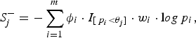 $$S_j^ - = - \sum\limits_{i = 1}^m {\phi _i} \cdot {I_{[{\,p_i} \lt {\theta _j}]}} \cdot {w_i} \cdot {\rm l}og{\,p_i},$$