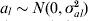 $a_{l} \sim N\lpar 0\comma \sigma _{al}^{\setnum{2}} \rpar $, so that the sizes are random effects, have their own variance (resulting in a random regression on the pseudo-marker scores mE,l) and all have a different variance to the unselected effects. This makes sense as putative QTL effects exhibit variation from zero because they are QTL. Thus, putative QTL are assumed to come from their own distribution and non-QTL come from another distribution. The distributions differ in their variances and not their means. This approach has the flavour of hierarchical models proposed by Griffin & Brown (Reference Griffin and Brown2010) and others in high-dimensional variable selection.
