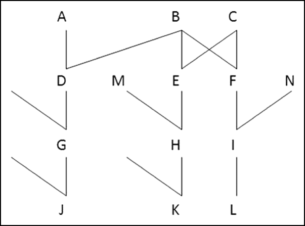 Just as for lineal relatives, half-sibs (e.g. D and E in Fig. 1) and their descendants can have only one or zero pairs of ibd alleles at a locus. Formulae for variances of sharing ibd for half-sibs were given by Hill (Reference Hill1993b) and Guo (Reference Guo1995), but we generalize these here in order to include subsequent generations.