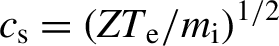 ${c}_{\mathrm{s}}={\left({ZT}_{\mathrm{e}}/{m}_{\mathrm{i}}\right)}^{1/2}$