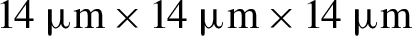 $14\ \unicode{x3bc}\text{m}\times 14\ \unicode{x3bc}\text{m}\times 14\ \unicode{x3bc}\text{m}$