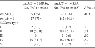 TABLE 3 Comparison of MRSA Isolate Characteristics by qacA/B Status
