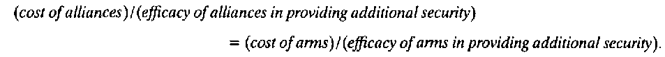 To see this, solve Altfeld's equations (1) and (2) for the partial derivatives of utility with respect to security and set the resulting expressions equal (see Altfeld, “The Decision to Ally”).