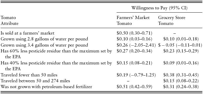 Table 5. Willingness to Pay for Tomato AttributesFootnote a