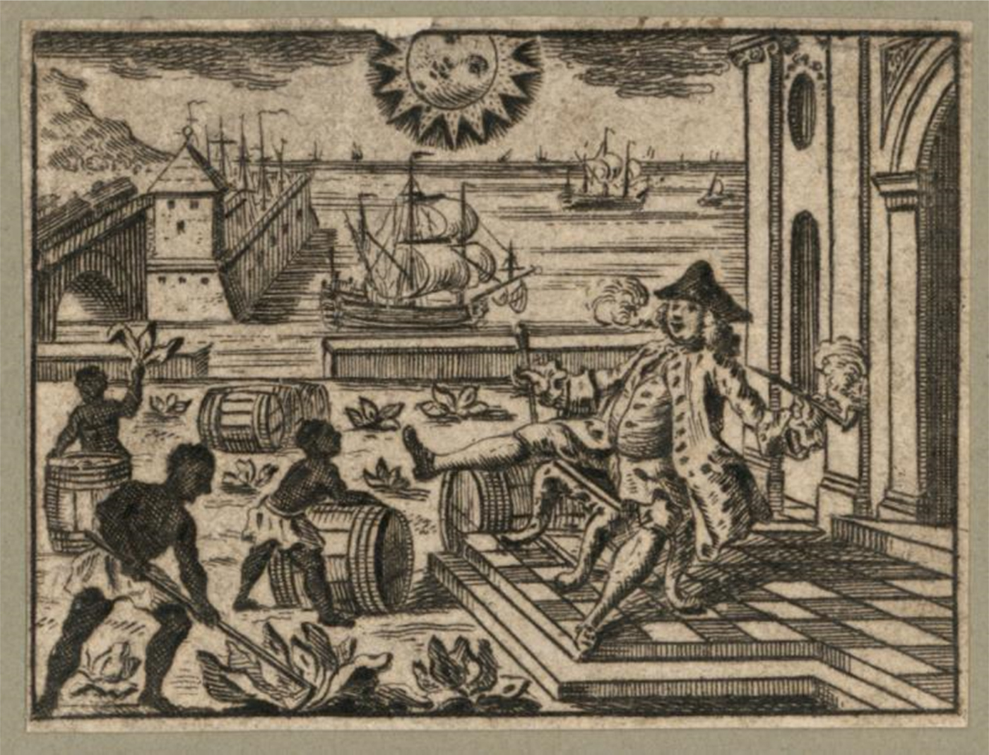 English ships made about three hundred sorties to the Caribbean between 1550 and 1624, involving about twenty-five thousand sailors and nine hundred ships. Looting was soon as commonplace as trade in these environs, with tobacco a preferred commodity.Footnote 3 Mariners suffered many deprivations on long journeys, and tobacco eased hunger at sea; when on shore, they typically binged, and tobacco offered another means of relaxation. The habit readily translated to new contexts, and the tobacco pipe came in time to characterize maritime men. Sailors’ rowdy conviviality and martial exploits signaled the growth of a new-style of plebeian masculinity embedded in British imperial pursuits. Ballads praised mariners’ exploits, and eighteenth-century print media marked their rhetorical rise with tobacco pipes at hand.Footnote 4