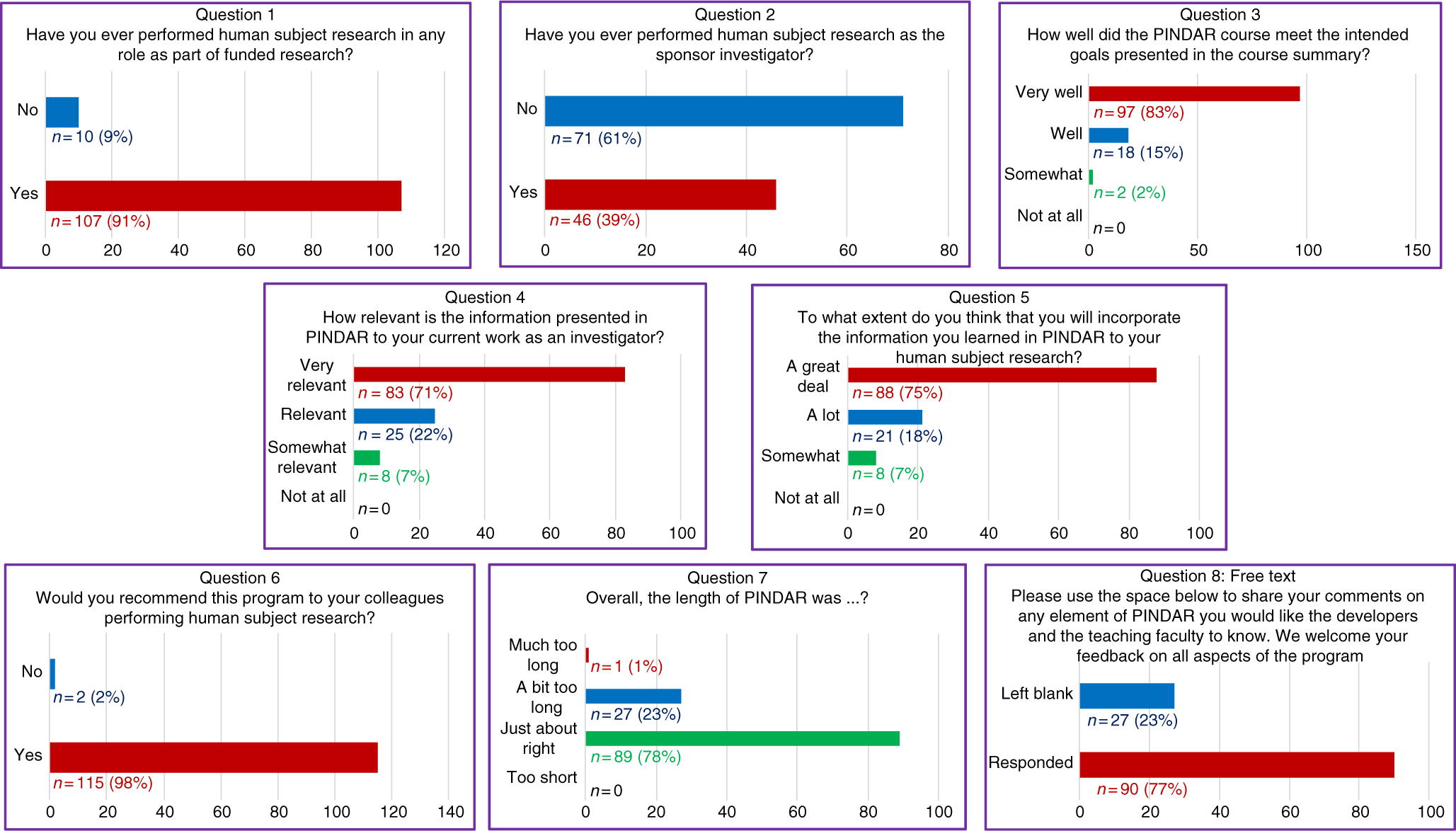 Fig. 2. All PIs (n = 117) completed an immediate eight-question post-course survey on paper at the close of each PINDAR session.