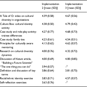 Table 3 Activities rated as most effectiveFootnote * for helping mentors become more culturally aware