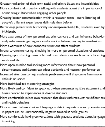 Table 4 Perceived culturally aware mentoring skill gainsFootnote * as reported by mentors at the conclusion of the training