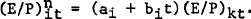 is found by subtracting dividends from normalized earnings computed by (ai + ait)(E/)kt(P)it.