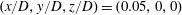 $(x/D,y/D,z/D)=(0,1/4,0)$