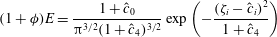 $$\begin{eqnarray}(1+{\it\phi})E=\frac{1+{\hat{c}}_{0}}{{\rm\pi}^{3/2}(1+{\hat{c}}_{4})^{3/2}}\exp \left(-\frac{({\it\zeta}_{i}-{\hat{c}}_{i})^{2}}{1+{\hat{c}}_{4}}\right)\end{eqnarray}$$