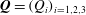 $\boldsymbol{Q}=(Q_{i})_{i=1,2,3}$ in the spherical coordinate system are denoted by using
