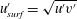 $u_{surf}^{\prime }=\sqrt{u^{\prime }v^{\prime }}$